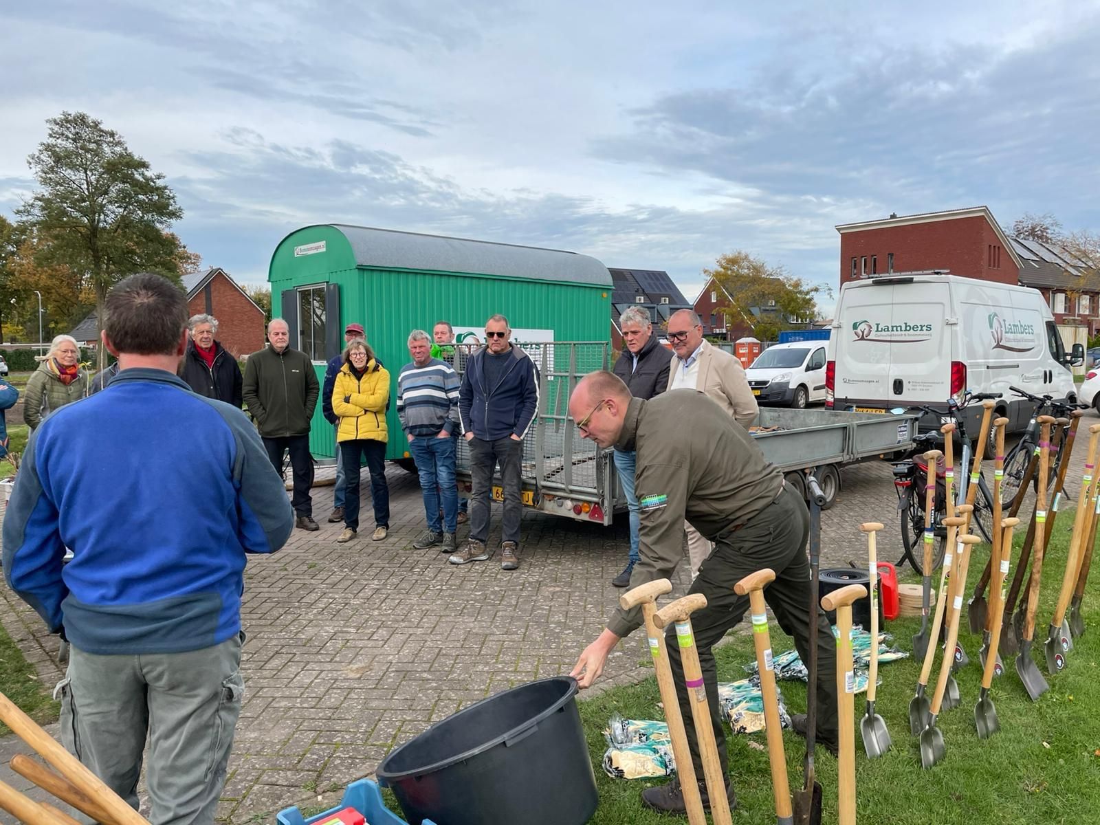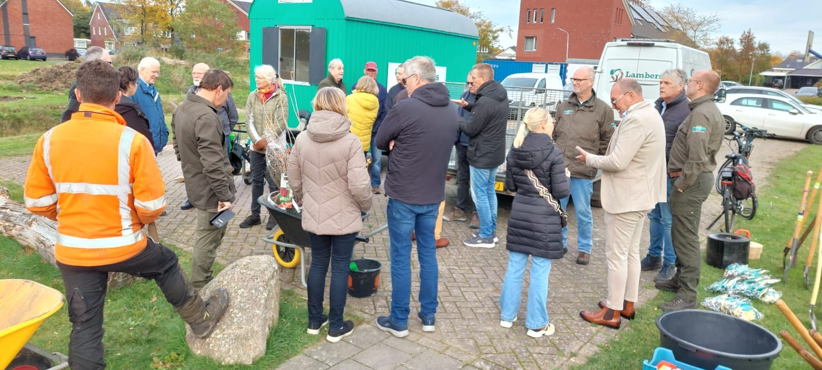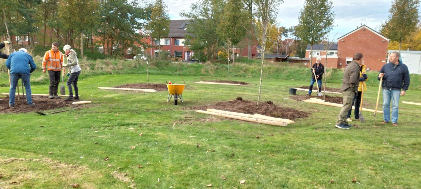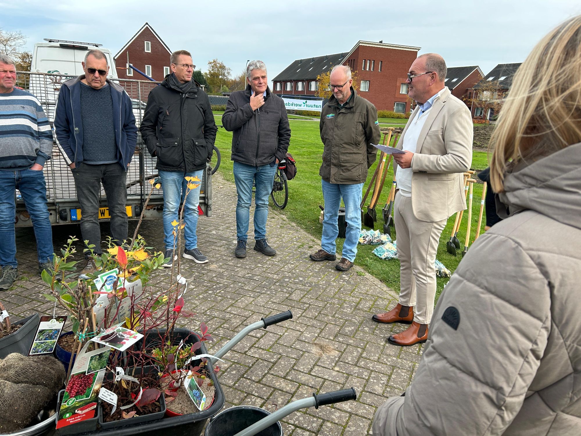 Op 31 oktober 2025 vierden de Nationale Natuurwerkdagen hun 25-jarig jubileum. Een groene mijlpaal die niet ongemerkt is voorbijgegaan. Om dit te vieren waren vrijwilligers door Landschapsbeheer Drenthe en de Gemeente Emmen uitgenodigd om een groene bijdrage te leveren aan de wijk Emmerschans, waarmee de biodiversiteit in de wijk de komende jaren weer sterker wordt.Het evenement starte met een feestelijke opening door wethouder Albert-Jan Jacobs, waarna de 16 opgekomen vrijwilligers en de Werkgroep Biodiversiteit van de buurtvereniging startten met hun vergroeningsproject, het aanplanten van 7 hoogstam fruitbomen zoals appels, peren en pruimen, 3 zomerlindes en een assortiment aan klein fruit zoals blauwe bessen, bosbessen, zwarte bessen en rode bessen.
