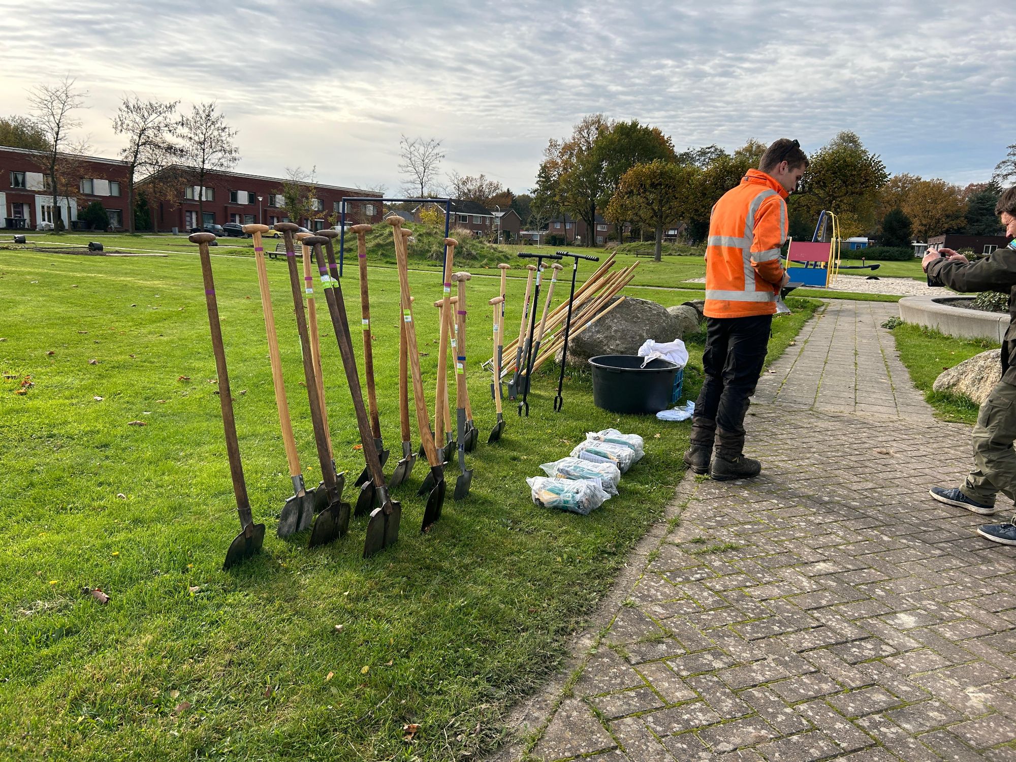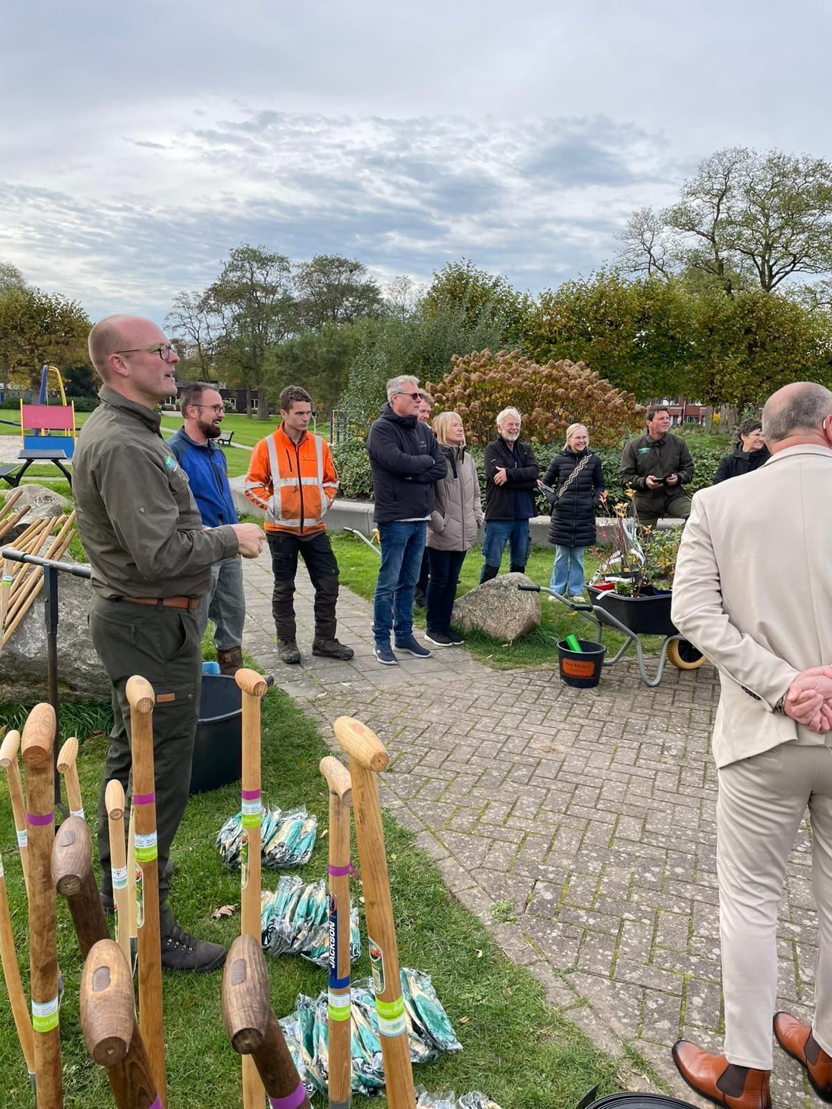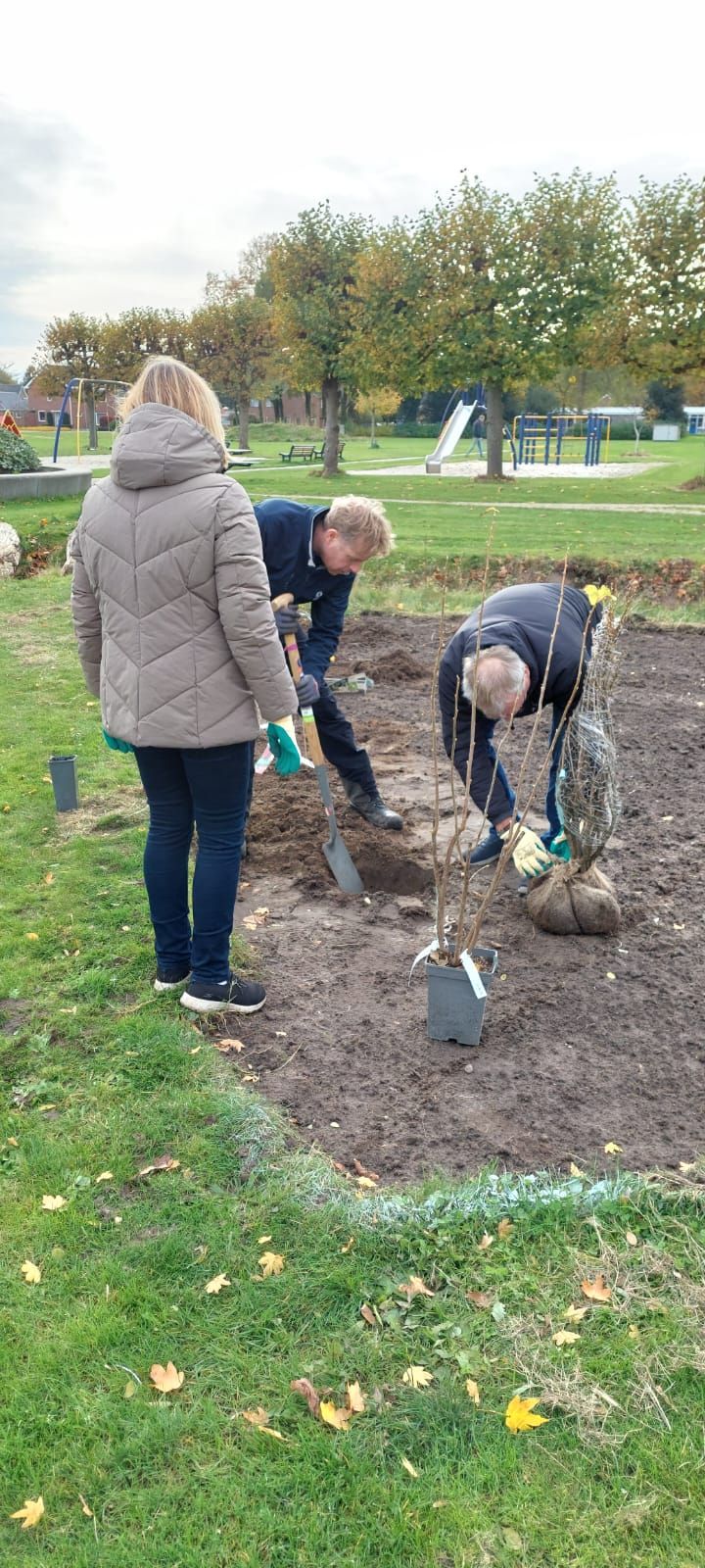 Op 31 oktober 2025 vierden de Nationale Natuurwerkdagen hun 25-jarig jubileum. Een groene mijlpaal die niet ongemerkt is voorbijgegaan. Om dit te vieren waren vrijwilligers door Landschapsbeheer Drenthe en de Gemeente Emmen uitgenodigd om een groene bijdrage te leveren aan de wijk Emmerschans, waarmee de biodiversiteit in de wijk de komende jaren weer sterker wordt.Het evenement starte met een feestelijke opening door wethouder Albert-Jan Jacobs, waarna de 16 opgekomen vrijwilligers en de Werkgroep Biodiversiteit van de buurtvereniging startten met hun vergroeningsproject, het aanplanten van 7 hoogstam fruitbomen zoals appels, peren en pruimen, 3 zomerlindes en een assortiment aan klein fruit zoals blauwe bessen, bosbessen, zwarte bessen en rode bessen.