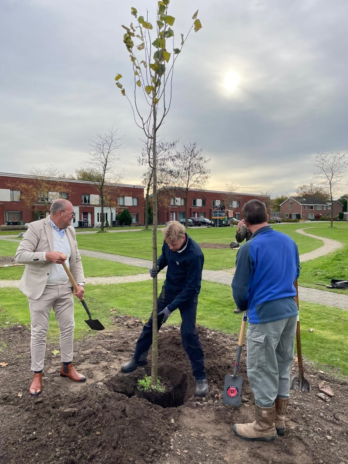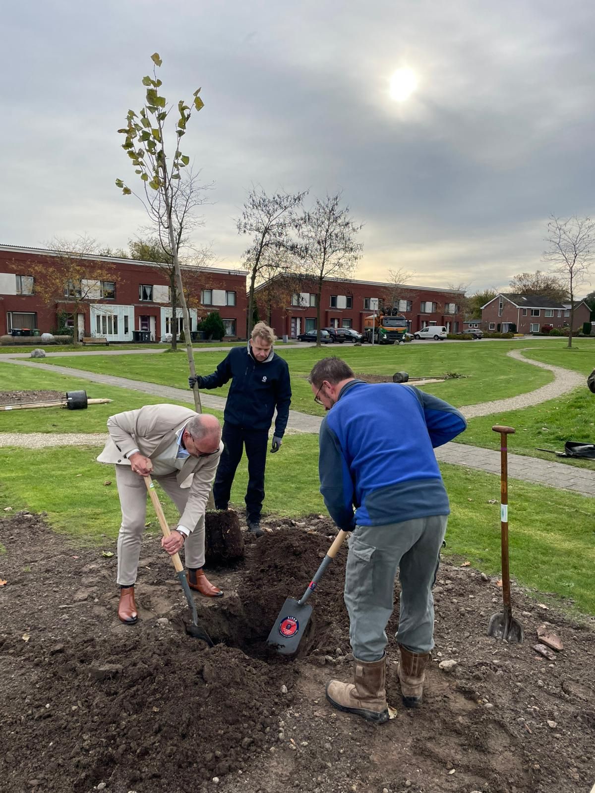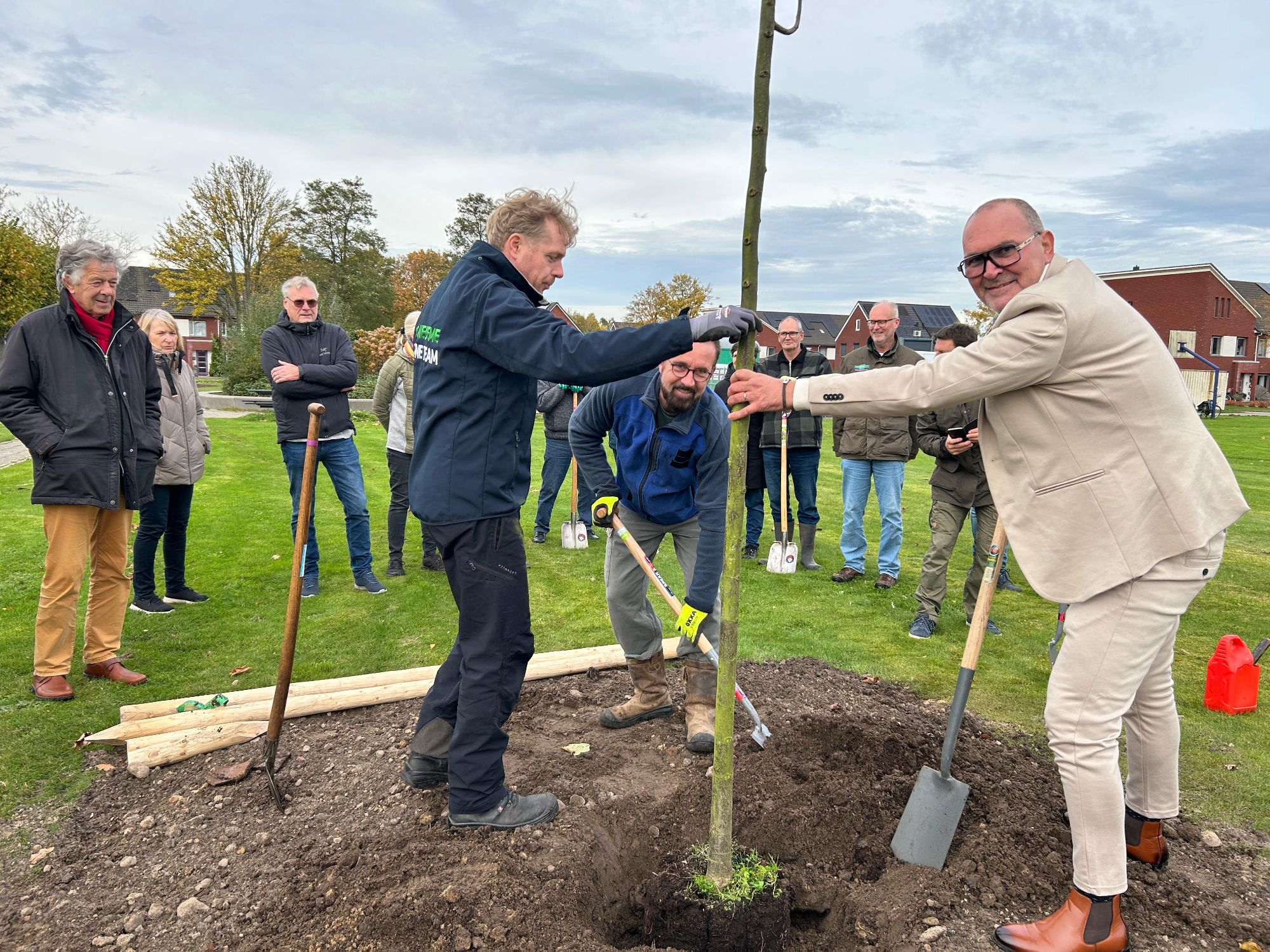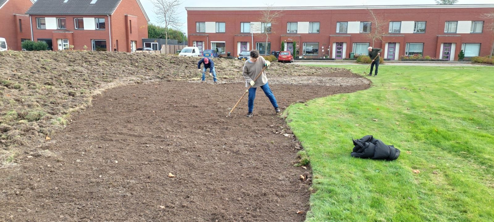 Op 31 oktober 2025 vierden de Nationale Natuurwerkdagen hun 25-jarig jubileum. Een groene mijlpaal die niet ongemerkt is voorbijgegaan. Om dit te vieren waren vrijwilligers door Landschapsbeheer Drenthe en de Gemeente Emmen uitgenodigd om een groene bijdrage te leveren aan de wijk Emmerschans, waarmee de biodiversiteit in de wijk de komende jaren weer sterker wordt.Het evenement starte met een feestelijke opening door wethouder Albert-Jan Jacobs, waarna de 16 opgekomen vrijwilligers en de Werkgroep Biodiversiteit van de buurtvereniging startten met hun vergroeningsproject, het aanplanten van 7 hoogstam fruitbomen zoals appels, peren en pruimen, 3 zomerlindes en een assortiment aan klein fruit zoals blauwe bessen, bosbessen, zwarte bessen en rode bessen.