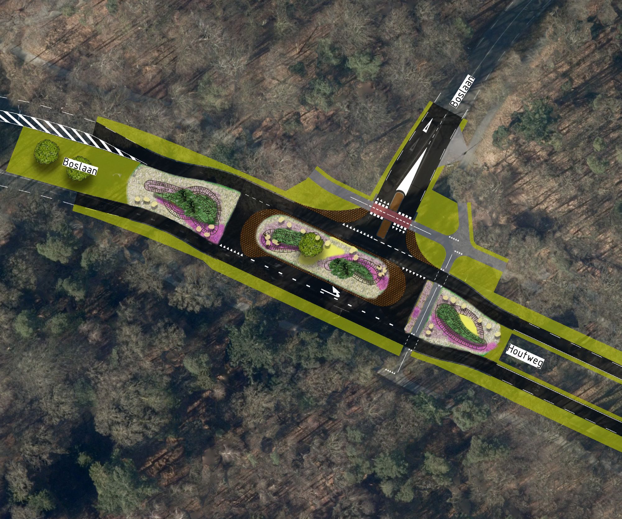 Binnenkort wordt er gestart met de werkzaamheden op de Houtweg tussen de Boslaan en Laan van de Eekharst. Er wordt een voorrangsplein aangelegd op de kruising Houtweg/Boslaan en er wordt een rijstrook verwijderd op de Houtweg. Tot slot wordt er ook nog het noodzakelijke asfaltonderhoud uitgevoerd.
